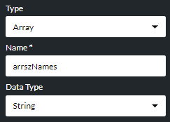Or, if you are creating a variable of type Array, use the Data Type options list to specify the type of data the array's elements will store.